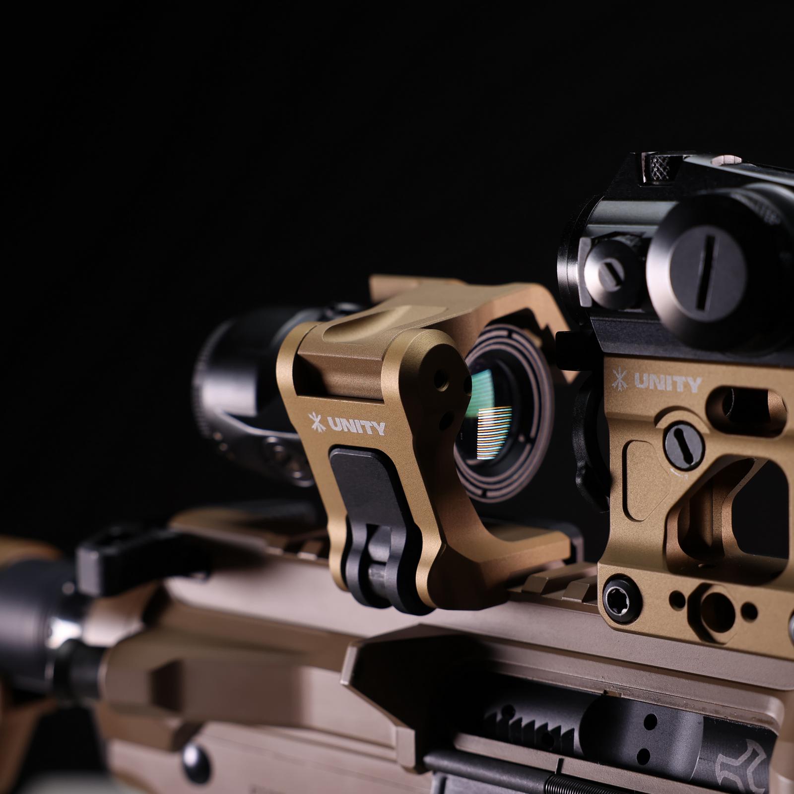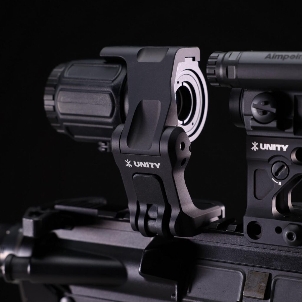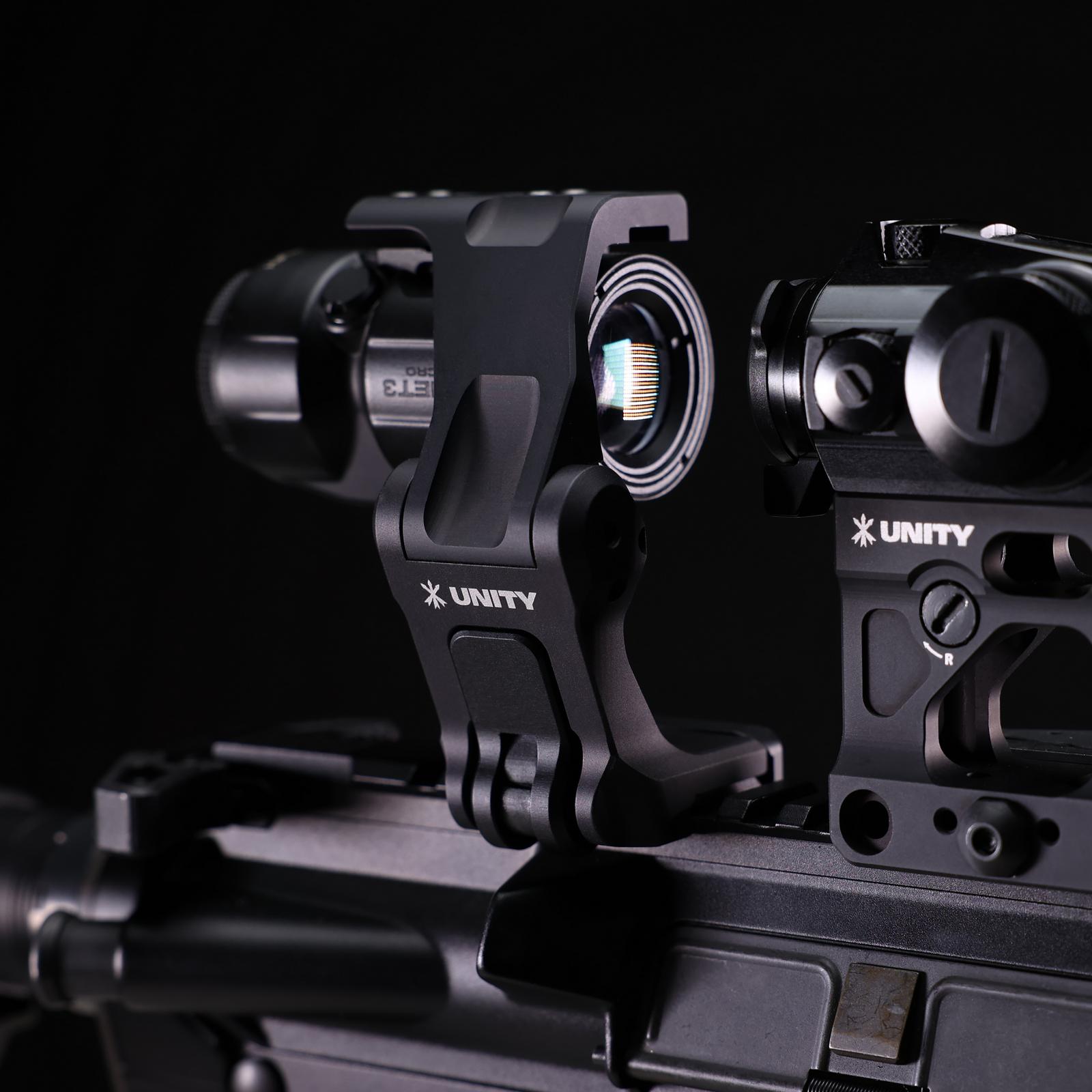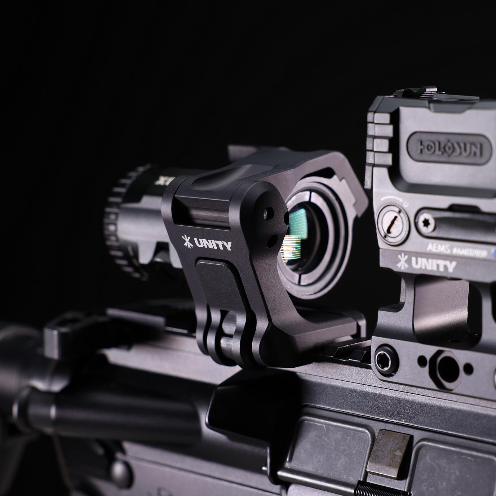 Powiększalniki osadzone w montażach Unity Tactical FAST™ FTC OMNI są w pełni kompatybilne z dowolnymi celownikami zamocowanymi na Unity Tactical FAST™ Micro Mount oraz Unity Tactical FAST™ Optics Riser.