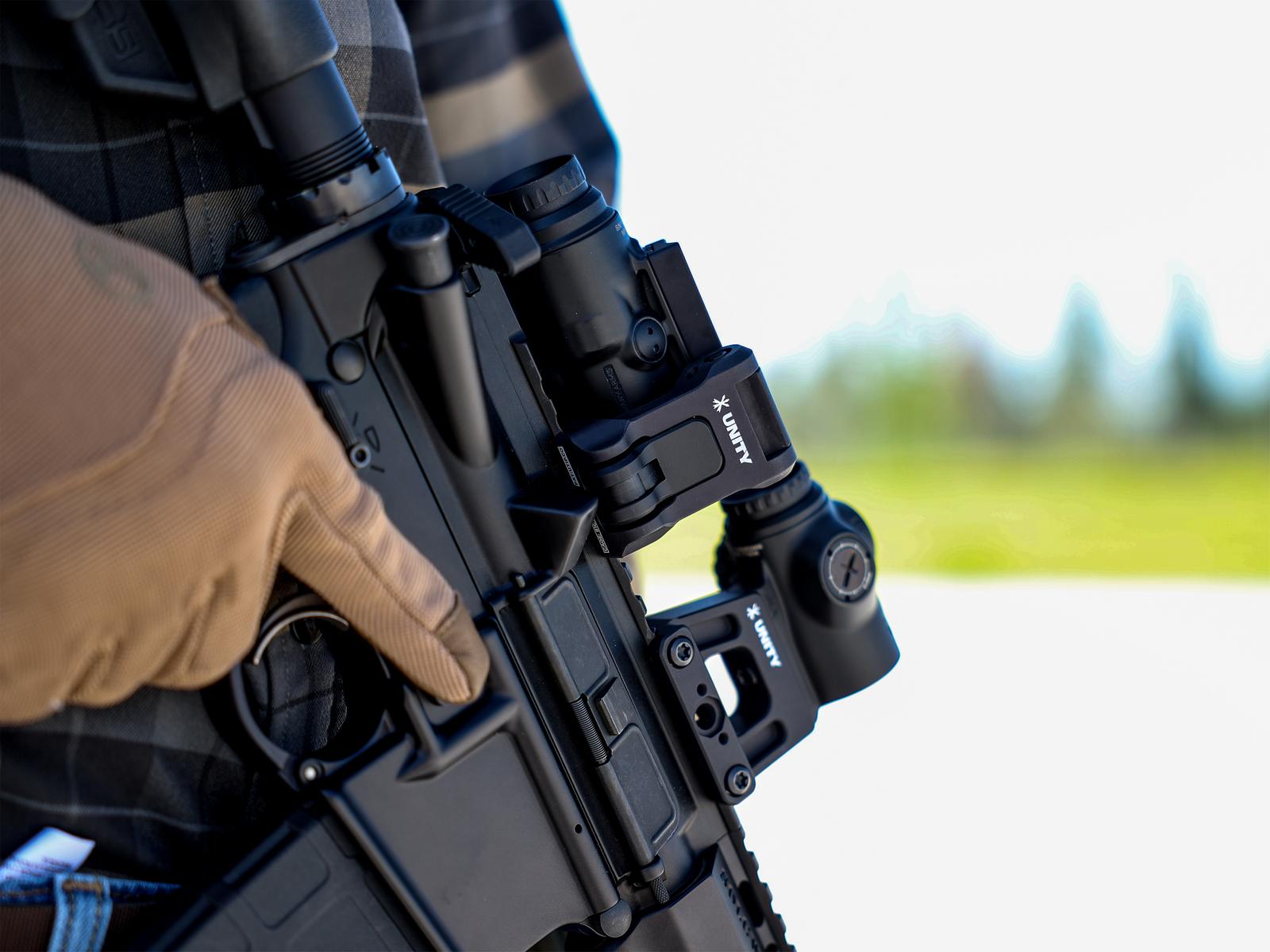 Unity Tactical FAST™ FTC Primary Arms Micro Magnifier Mount to rewolucyjny montaż rozwiązujący problem z powiększalnikami zamocowanymi na karabinkach. Dzięki opatentowanemu mechanizmowi Flip-To-Center (FTC), nieużywany powiększalnik znajduje się w osi broni a nie wystaje na bok, zwiększając obrys karabinka, ryzyko zahaczenia o framugi albo w trakcie skoków spadochronowych czy zjazdów na linach. Zwykłe montaże powiększalników mogą w ekstremalnej sytuacji doprowadzić do uszkodzenia optyki lub utraty zdrowia.